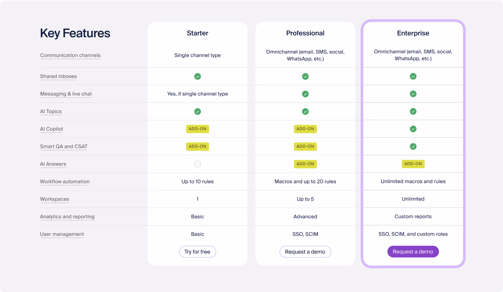 The pricing page was a legacy design that needed a refresh to align with the new brand and improve the UX—revisiting the features table, refining item layouts, adding relevant on-scroll animations, and more.
