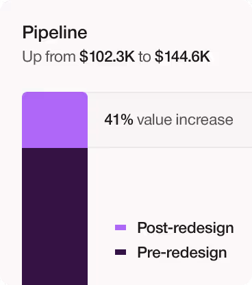 Post-redesign, the pipeline saw a 41% increase in value, rising from $102.3K to $144.6K, reflecting more opportunities driven by demo submissions.