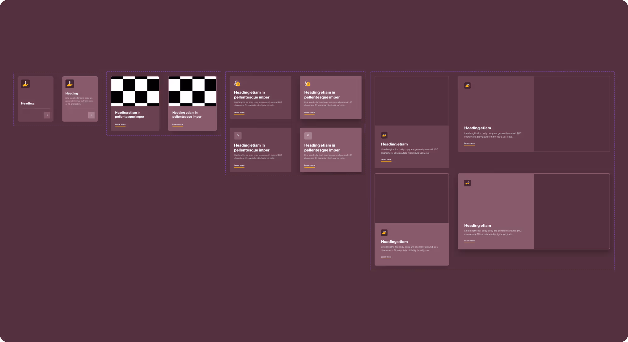 When separating the cards from one big component, a focus was on how the user toggles between the cards in Figma’s UI. Once the library was published, it was easier to find the necessary card molecule.
