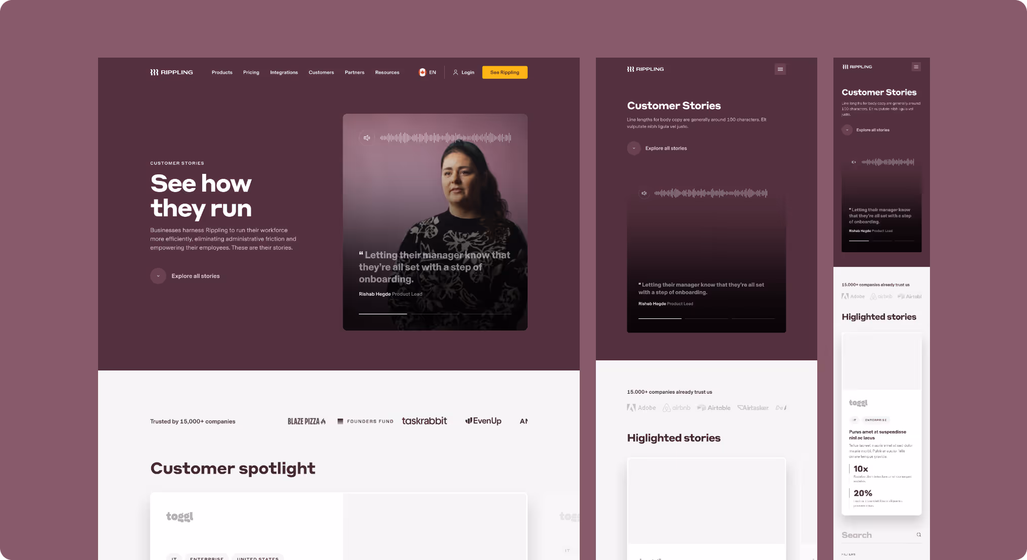 Production Designer at Rippling Brand Team, expanding on the existing web design system through detailed explorations and other web materials.